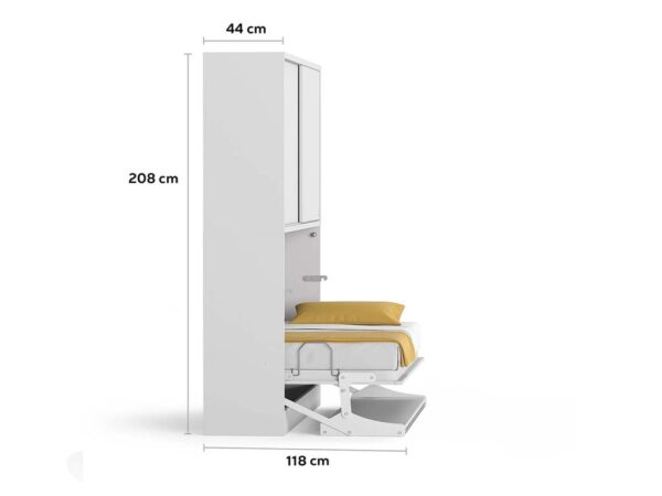 Deze eenpersoons opklapbed Academy is ideaal voor elke studentenkamer deze Eenpersoons opklapbed Academy id een zijwaarts te openen opklapbed. Kastruimte voorzien van schuifdeuren. Een 2 meter lange bureaufunctie, dankzij het speciale mechanisme blijven alle items op het bureau staan tijdens het openen en sluiten van het bed. Eventueel te leveren met hoofdbordje in de kleur grijs tegen meerprijs.