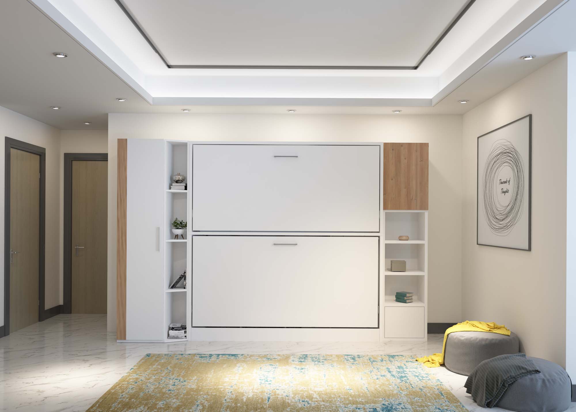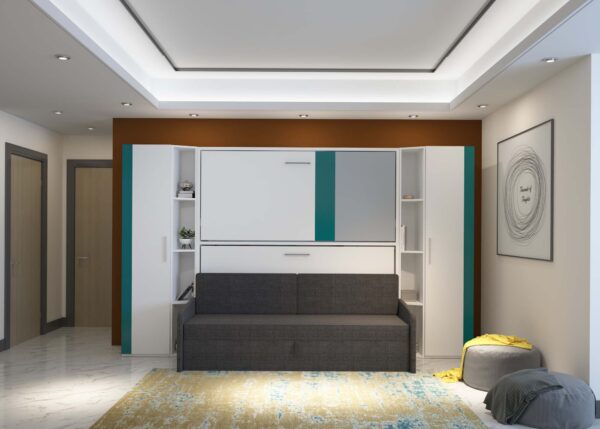 Zoals al onze producten, wordt geproduceerd met materialen in EU-kwaliteitsnormen. Opklapbedmechanisme, ook ontworpen en geproduceerd door Multimo, heeft een levensduur van minimaal 10 jaar en deze periode kan veel langer zijn, afhankelijk van zorgvuldig gebruik. De 25 jaar oude Multimo-producten werken nog steeds en worden veilig gebruikt in huizen en kantoren. De matrasbodem wordt ondersteund door aluminium frame en latten voor extra comfort en verhoging van de duurzaamheid.