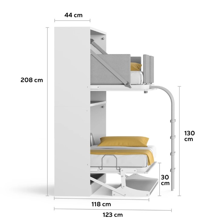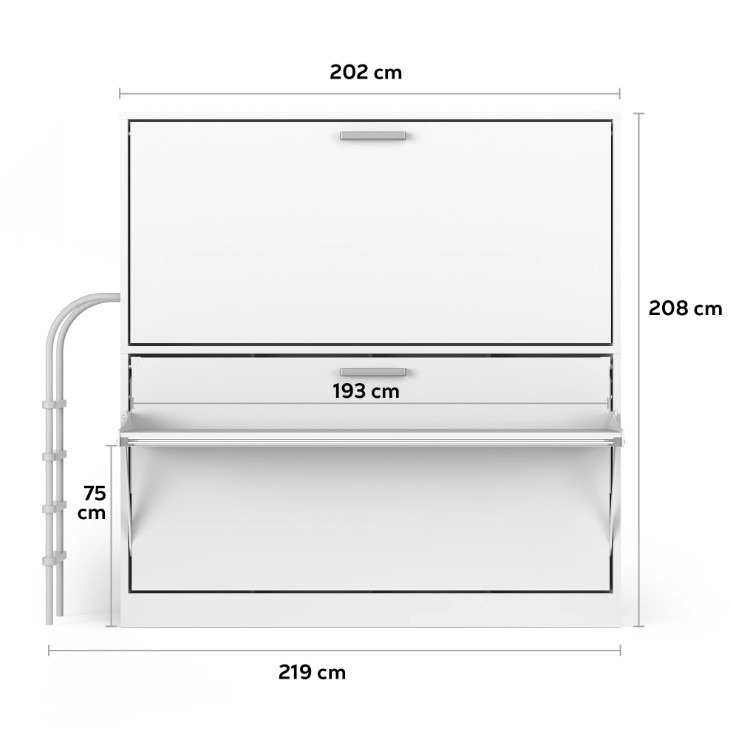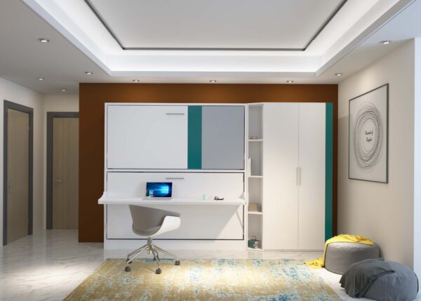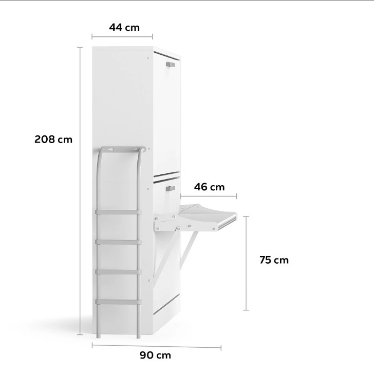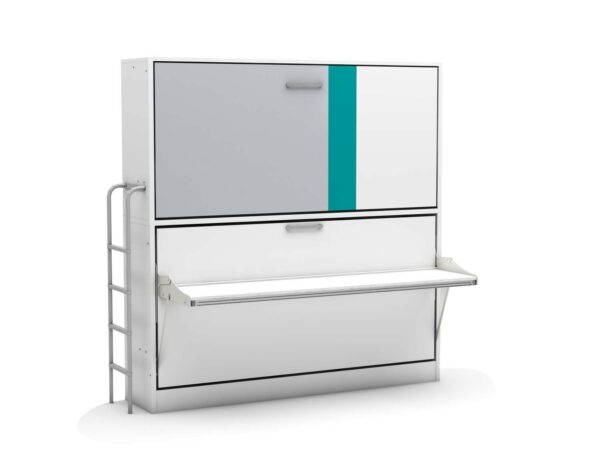 2 bedden en een bureau van 2 meter lang zijn gecombineerd in één meubel. Op andere tijden dan slapen, kunt u uw bedden opvouwen en uw bureau gebruiken.